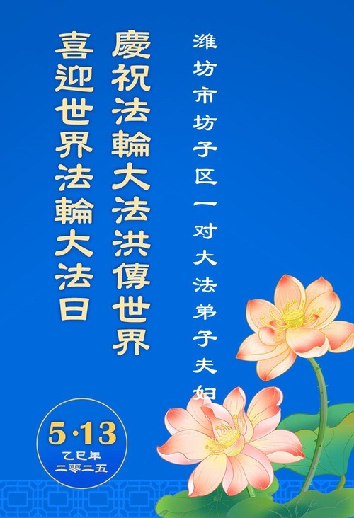 Falun Dafa Practitioners from Weifang City Wish Revered Master a Happy Birthday and Celebrate World Falun Dafa Day!