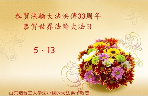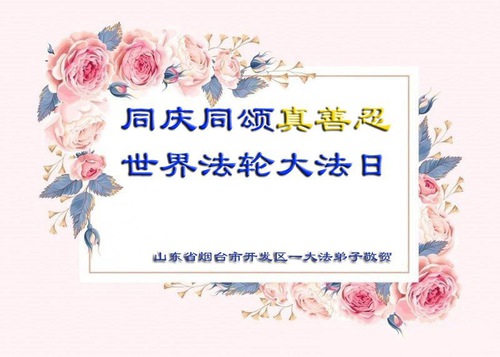 In this report, we present a selection of the 18 greetings sent from Falun Dafa practitioners in Shandong Province, China. The practitioners are grateful to Master for introducing the principles of Truthfulness-Compassion-Forbearance, and for how the practice has benefited them. They vowed to be more diligent in cultivation and help more people know how wonderful Falun Dafa is.