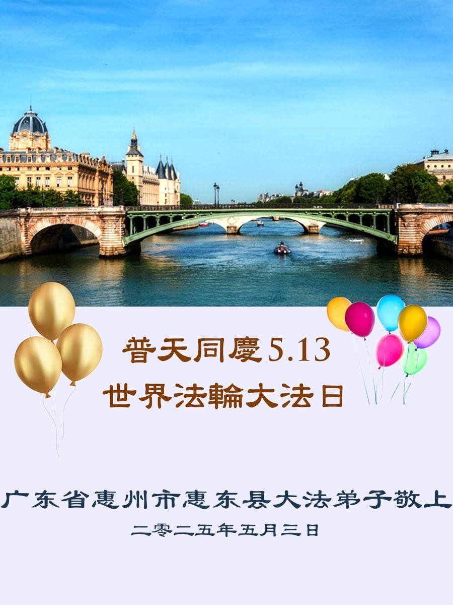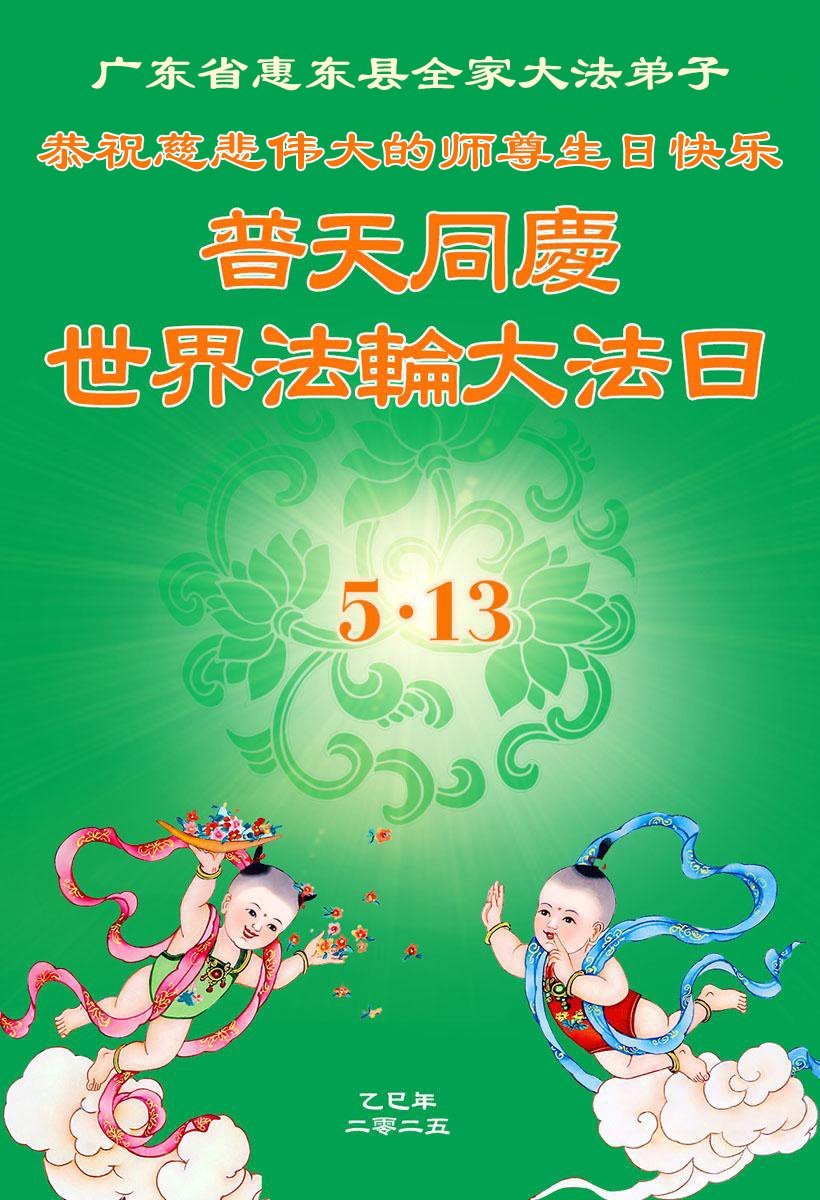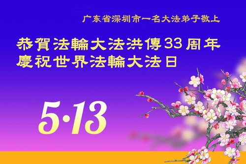 (Minghui.org) In this report, we present a selection of the 18 greetings sent from Falun Dafa practitioners in Guangdong Province, China, to celebrate the special occasion of May 13, 2025: the 26th World Falun Dafa Day and the birthday of Master Li Hongzhi.