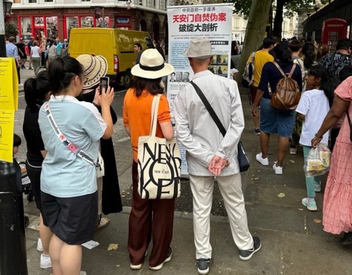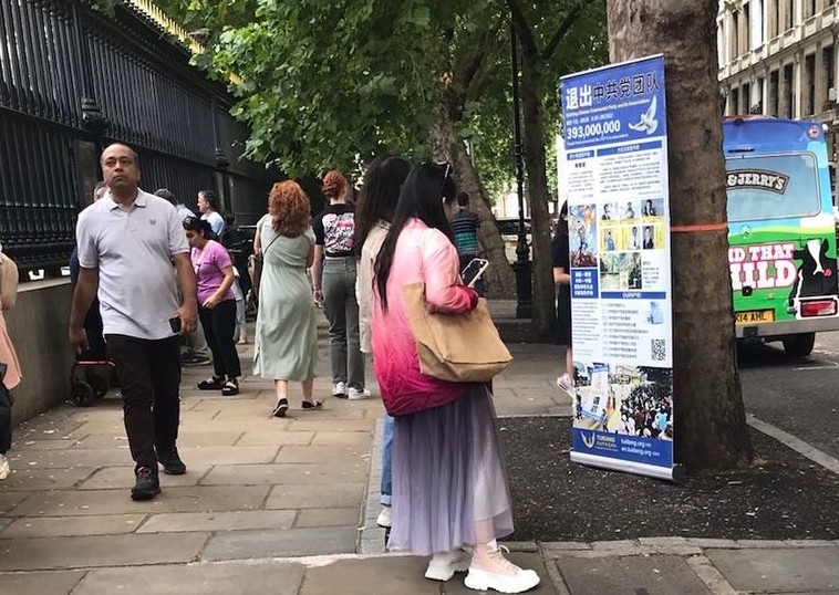 Over the years, outside the British Museum in London, many Chinese tourists have learned about the persecution. Some immediately renounced the CCP and its affiliated organizations, while others took informational materials home to read. Some lamented that they had never seen this information in China and only heard about it for the first time while traveling abroad.