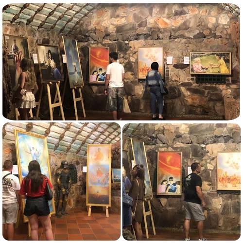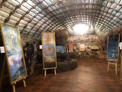 The art was displayed in the castle’s largest throne room and fit well with the fairy-tale style of the surroundings. Visitors from Bulgaria and abroad came to view the exhibition, with many people expressing wonder at the beauty of its spiritual themes.