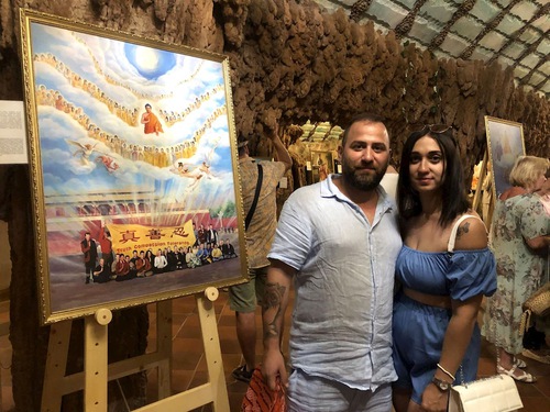 Tsvetelin and his girlfriend Pleven said the paintings showed them how cruelly and unjustly Falun Dafa practitioners are being treated by the Chinese regime but also how powerful spirituality is. They had their photo next to the painting “Coming for You,” because it impressed them so deeply.