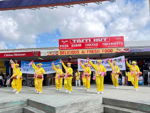 (Minghui.org) Practitioners held an event on September 27, 2025 at Otara Market in Auckland, New Zealand. They did the Falun Dafa exercises, and gave waist drum and dragon dance performances to celebrate the more than 450 million Chinese people who have quit the Chinese Communist Party (CCP) organizations. Many people agreed with Falun Dafa’s principles of Truthfulness-Compassion-Forbearance, and called on people to oppose the CCP’s suppression of the practice.