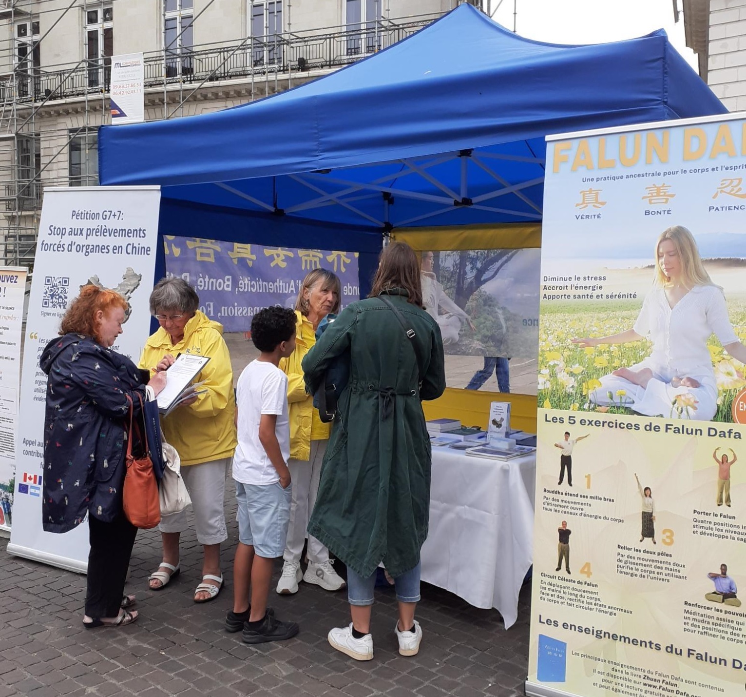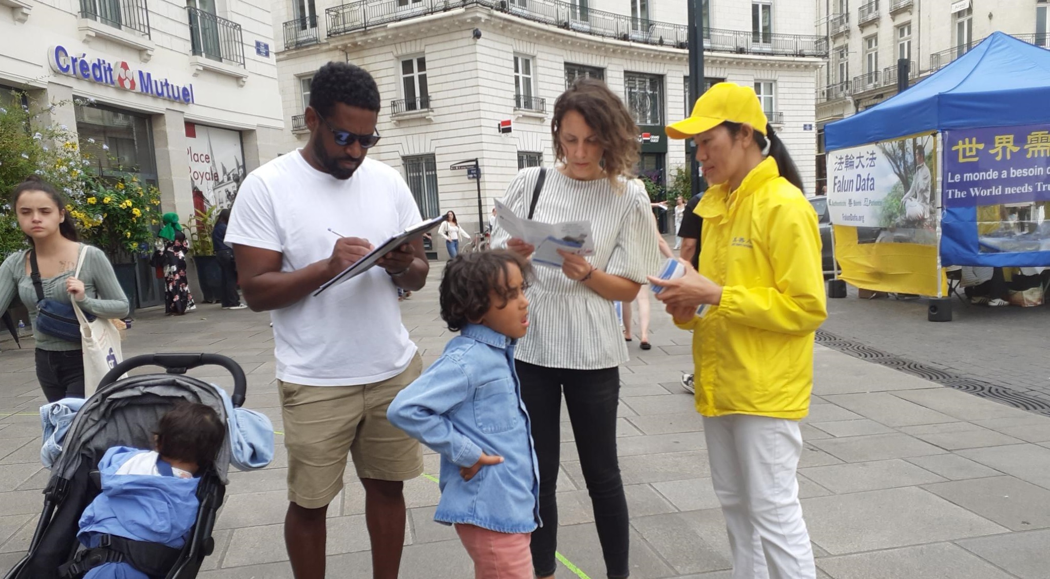 Practitioners have regularly held such activities in Nantes for years. On Saturday, they gathered at Place Royale and handed out flyers to passersby. They described the persecution that practitioners in China faced after it began. After learning about the brutal tactics, many signed the petition calling for an end to it.