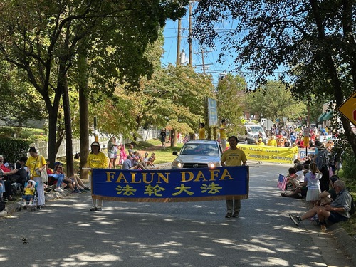 (Minghui.org) Falun Dafa practitioners from the Greater Washington, DC area participated in the Labor Day parade and celebrations in Kensington, Maryland on September 1, 2025. Many residents thanked them for bringing the message, “The World Needs Truthfulness, Compassion and Forbearance.” Some who’d previously heard about Falun Dafa left their contact information with practitioners and said they wanted to learn more about this traditional mind-body cultivation practice. Many people signed the petition calling for an end to the Chinese Communist Party’s (CCP) persecution of Falun Dafa.