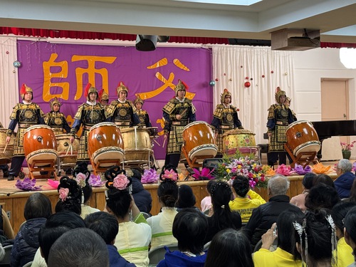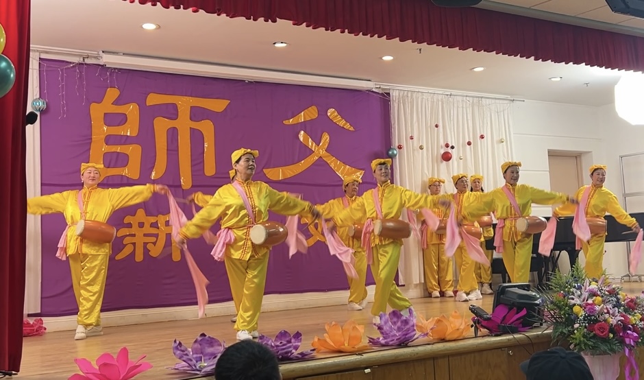 (Minghui.org) Falun Dafa practitioners gathered at the Taiwan Center in Flushing on December 28, 2025, to wish their founder, Master Li Hongzhi, a happy New Year. They conveyed their gratitude to Master and celebrated the arrival of the new year with drums, instrumental music, joyful songs, and dances. They expressed their resolve to continue cultivating with greater diligence and hope that people of the world remember: “Falun Dafa is good, Truthfulness-Compassion-Forbearance is good.”