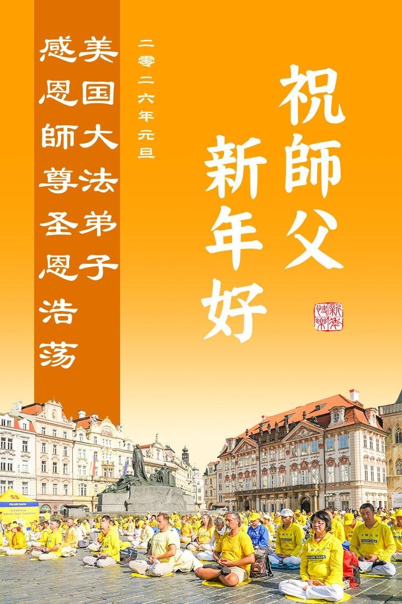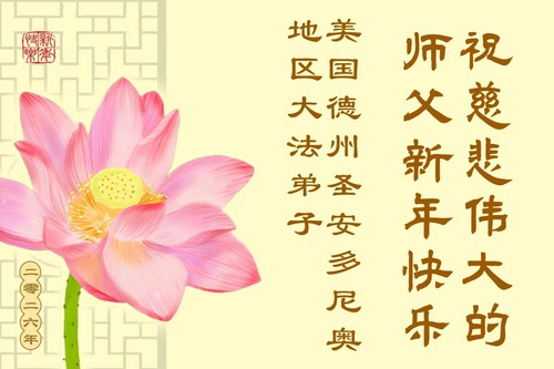 A Family of Three Practitioners from Jilin City, Jilin Province, China, Who Now Live in Austin, Texas, Respectfully Wish Master a Happy New Year!