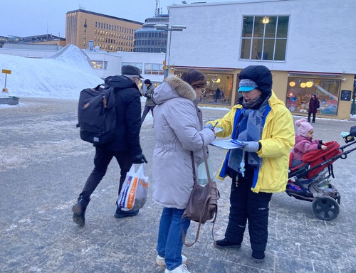 This January 27, practitioners in Finland braved minus 10-degree weather to hold a candlelight vigil to tell people the facts about the 27-year-long persecution of Falun Gong by the Chinese Communist Party (CCP). They informed passersby that this campaign has led to many practitioners being brutally tortured, injured, disabled, and even losing their lives. They let people know about the regime’s ongoing crime of organ harvesting, a crime that has involved many levels of society.