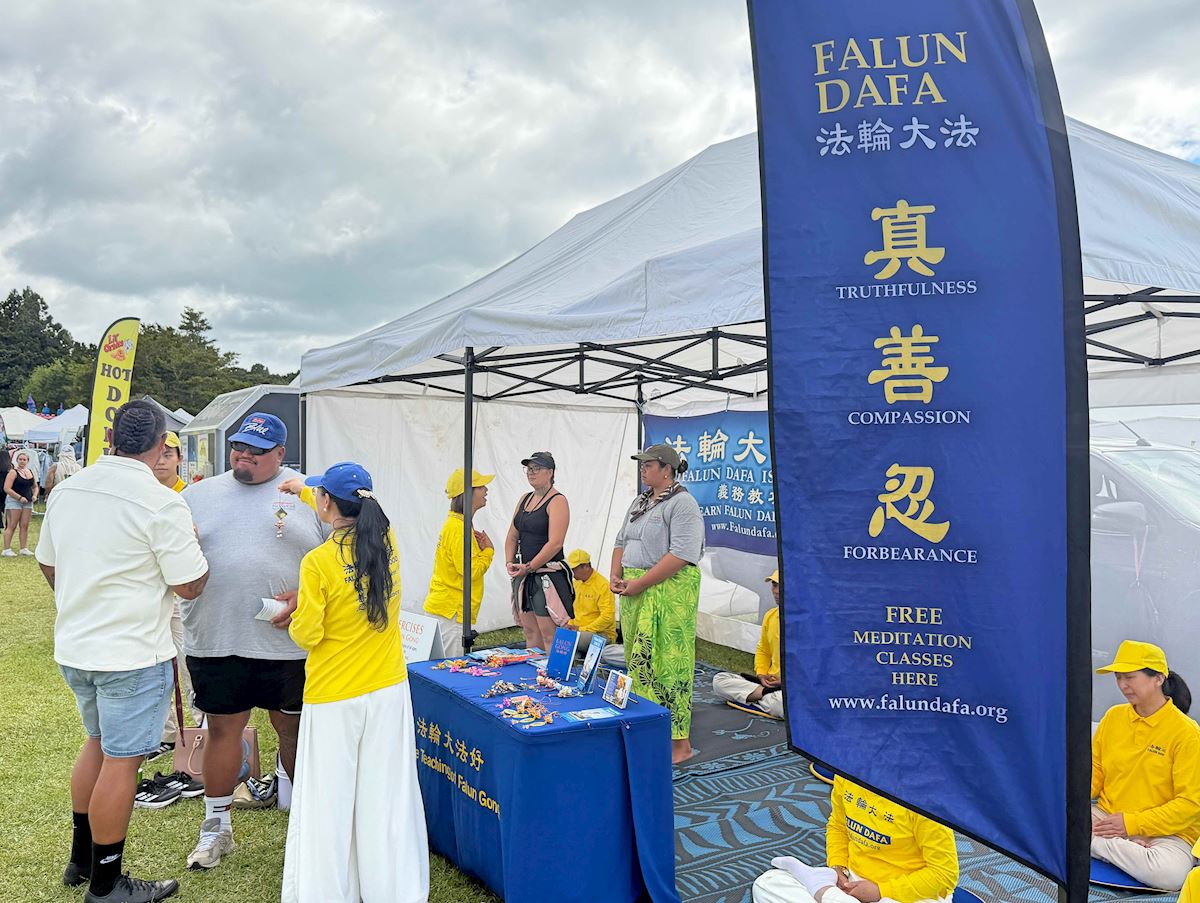 (Minghui.org) Practitioners participated in the annual Waitangi Day celebration in the Bay of Islands from February 5 to 6, 2026. They set up a booth, demonstrated the exercises, and introduced Falun Dafa to festival visitors.