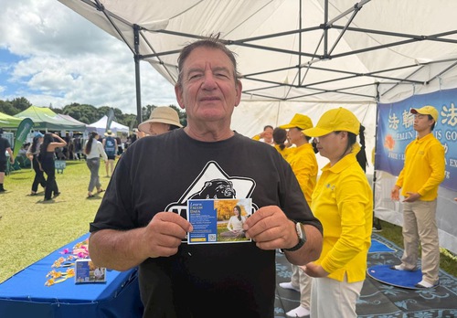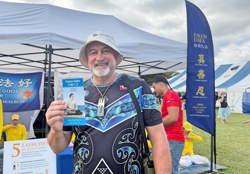 Maui Solomon, a lawyer from Chatham Island, stopped at the Falun Dafa booth. He said that he’s started looking into meditation and wanted to rediscover himself and establish a more harmonious relationship with the world through cultivation.