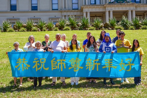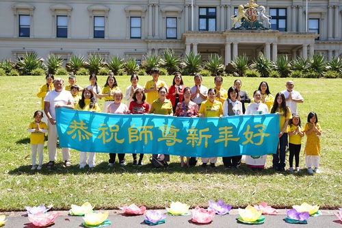 (Minghui.org) Practitioners held an event at the Treasury Gardens in Melbourne the first weekend in February to celebrate the upcoming Chinese New Year. They wished to thank the founder of Falun Dafa, Master Li, for the benefits they received from following the practice.