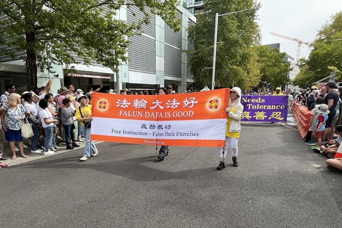 Falun Dafa practitioner Mai Nguyen, who teaches international students English at a college in Sydney, joined the Tian Guo Marching Band eight years ago. She said she was happy to participate in the cultural festival and tell people about Falun Dafa.