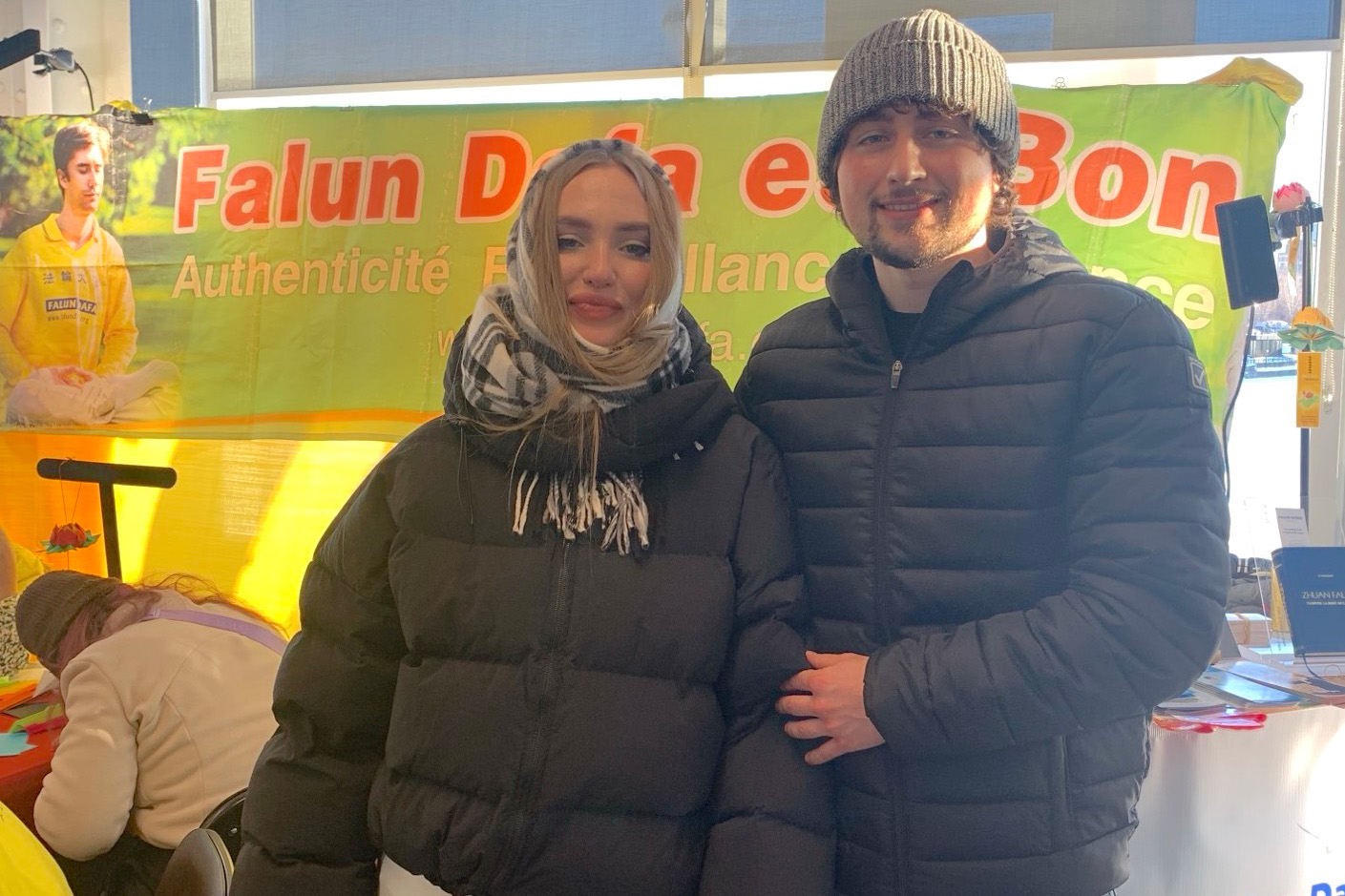 Practitioners introduce Falun Dafa during the Lunar New Year Celebration at the Old Port in Montréal.