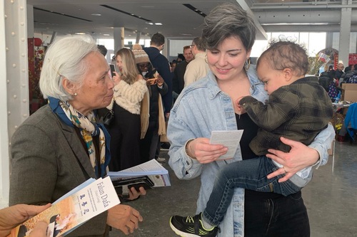 When one of the organizers of the event happened to pass the Falun Gong booth, she pressed her hands together in front of her chest and said, “We support Falun Dafa and Shen Yun.”