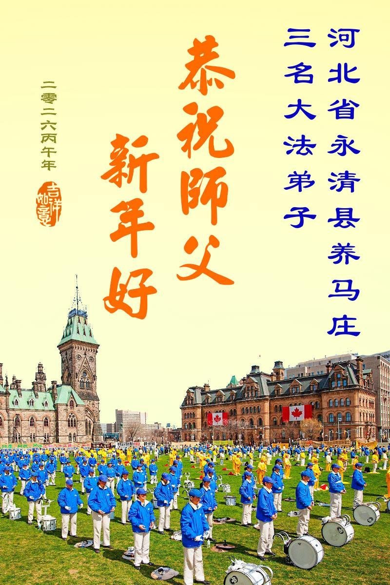 The greetings come from practitioners in these cities:Baoding, Handan, Hengshui, Cangzhou, Tangshan, Langfang, Zhangjiakou, Xingtai, Qinhuangdao, Chengde and other areas.