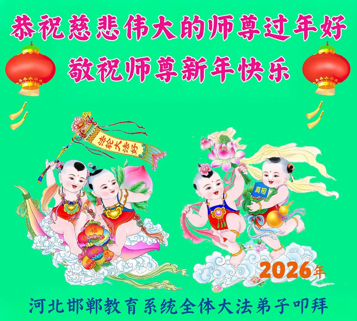 (Minghui.org) With the arrival of the 2026 Chinese New Year, Falun Dafa practitioners are sending heartfelt happy New Year wishes to Master Li Hongzhi, the founder of the practice.
