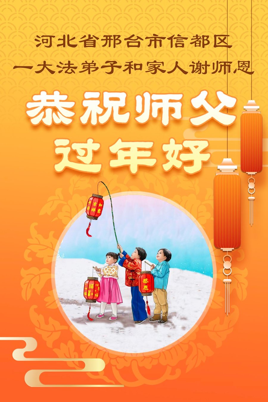 The greetings come from practitioners in these cities:Baoding, Hengshui, Zhangjiakou, Cangzhou, Xingtai, Handan, Tangshan, Langfang, Qinhuangdao and other areas.