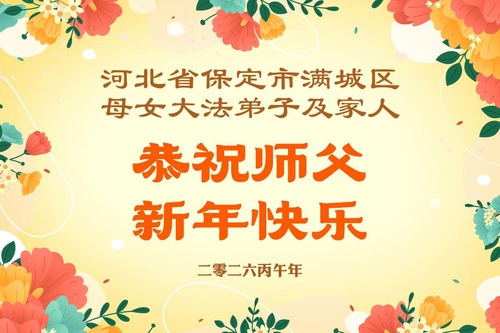 The greetings come from practitioners and supporters in these cities:Cangzhou, Baoding, Hengshui, Tangshan, Xiong’an, Zhangjiakou, Langfang, Xingtai, Handan, Qinhuangdao and other areas.