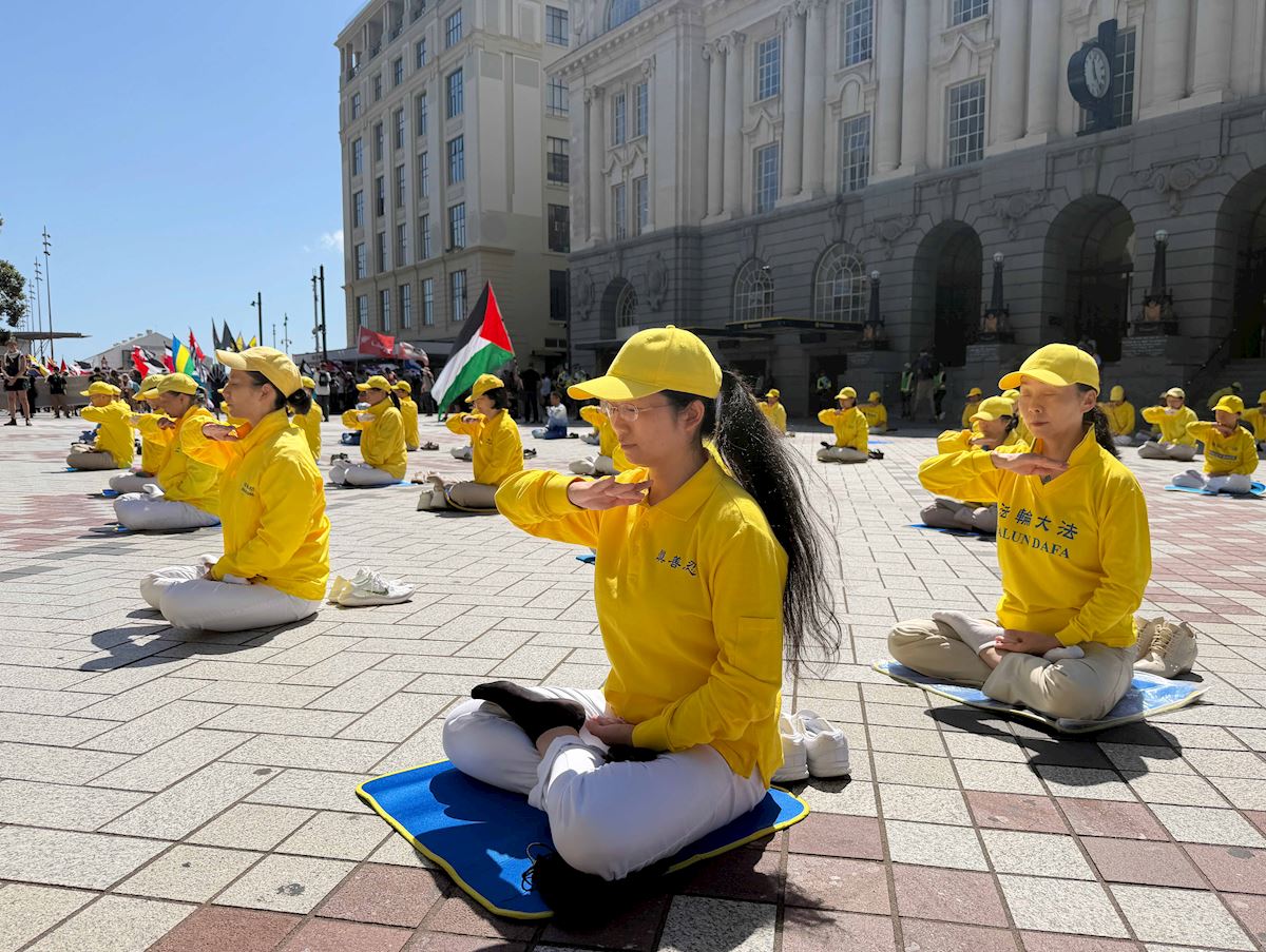 (Minghui.org) Practitioners held an event at Commercial Bay Plaza in Auckland on January 31, 2026, to introduce Falun Dafa to the public. They demonstrated the exercises and taught them for free. They also told people about the Falun Dafa practice and performed a dragon dance.