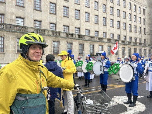 (Minghui.org) The Tian Guo Marching Band’s performance was well received during the St. Patrick’s Day Parade in Ottawa on March 7, 2026. Many people applauded and said they hoped to see the band participate next year.