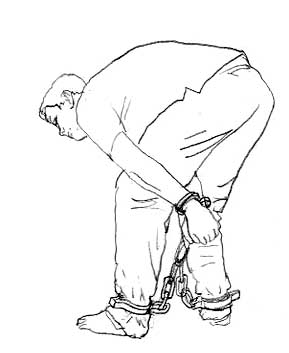 Torture illustration: Handcuffs and shackles chained together