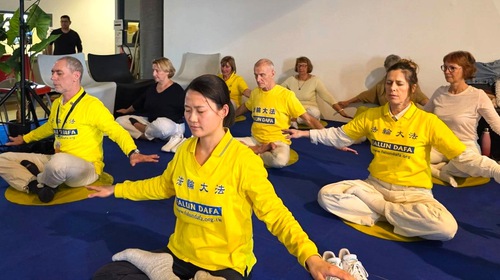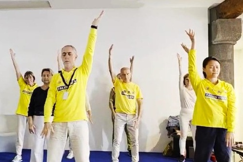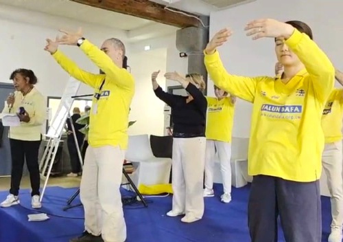 Practitioners demonstrated the exercises at the Wellness Fair in Agde, France, on March 8, 2026.