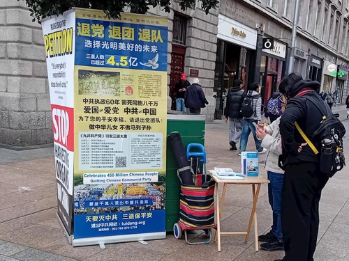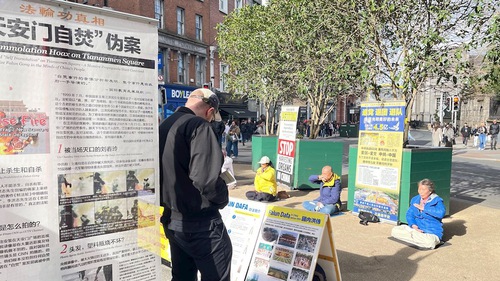 (Minghui.org) Falun Dafa practitioners in Ireland have held activities in Dublin to introduce Falun Dafa every weekend in March 2026. They have also raised awareness of the Chinese Communist Party’s (CCP) persecution of Dafa, a persecution that has continued unabated since July 1999. As more Chinese students, immigrants, and tourists began visiting the area, practitioners set up an information site during the week. Many Chinese people took the opportunity to withdraw from the CCP and its affiliated youth organizations.