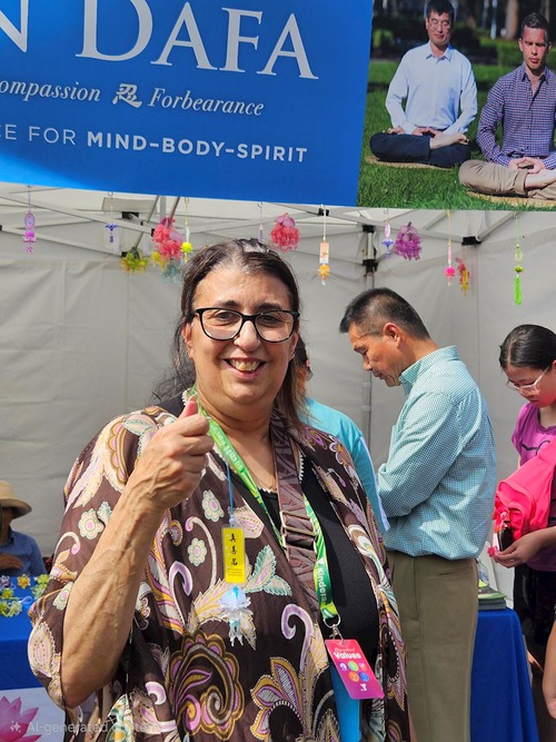 May, a Falun Dafa practitioner who helped run the booth at the festival, said she searched for a spiritual practice for a long time until she found Falun Dafa over ten years ago. “Falun Dafa is such a wonderful practice! I would like to share it with everyone. I participate in various activities to introduce Falun Dafa. I tell people how I was able to find the meaning of life and gain a better understanding of the importance of having compassion for others. Falun Dafa answered all my questions about life. I found peace and genuine happiness.”