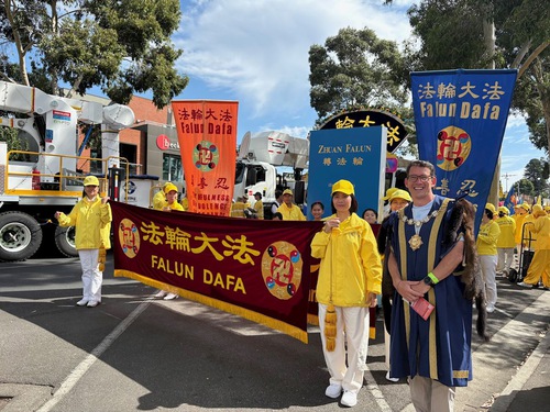 Major Events Officer for Bendigo, Raph Beh said about 60 groups participated in the parade, including many community and sports organizations. He praised the practitioners and said, “You are always so amazing. I think the locals love the Falun Dafa group’s colorful performance. You bring peace and pass on the value of kindness, and therefore you are welcome!”