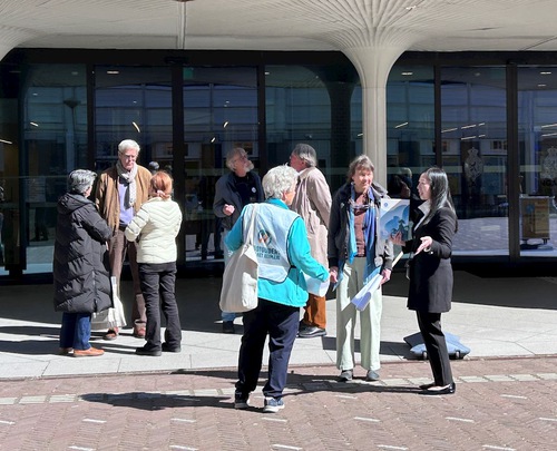 (Minghui.org) Practitioners held an event in front of the House of Representatives in The Hague (Den Haag) from April 7 to 9, 2026. They talked to the newly sworn-in Dutch government officials and Members of the House, and told them about the Chinese Communist Party’s (CCP) persecution of Falun Dafa. They also called on the Dutch government to support practitioners and help end the persecution.