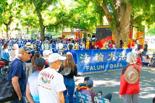 (Minghui.org) Falun Dafa practitioners were invited to participate in the Picnic Day Parade held by the University of California (UC) Davis on April 18, 2026. Many people praised the Tian Guo Marching Band and learned about Falun Dafa.