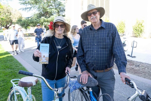 Professor Kellogg of UC Davis (left) and her friend watch the parade.