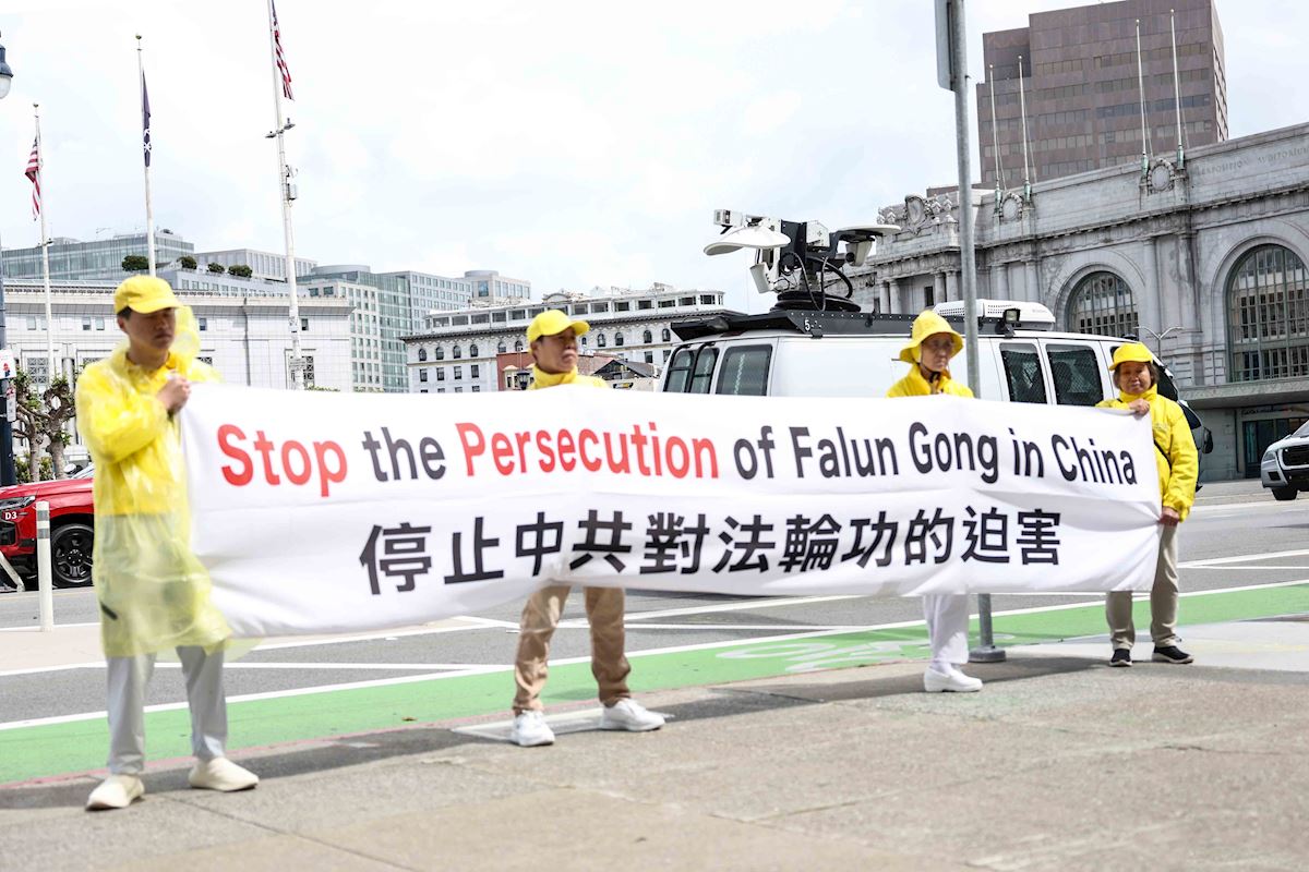 (Minghui.org) Falun Gong practitioners held a photo exhibit outside the San Francisco City Hall on April 21, 2026, to commemorate their peaceful appeal in Beijing on April 25, 1999.