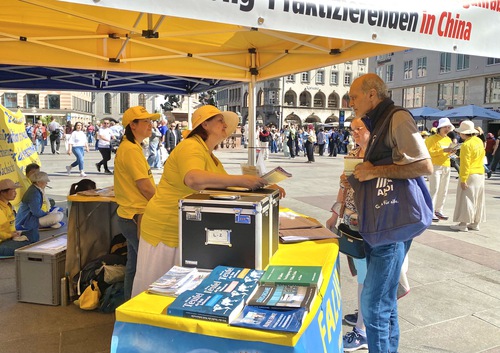Through the practitioners’ consistent efforts, more people learned about the situation in China. Johanna, an artist who walked by the event at Marienplatz, said she had previously heard about the persecution. She praised the event and said she hopes the persecution will end soon.