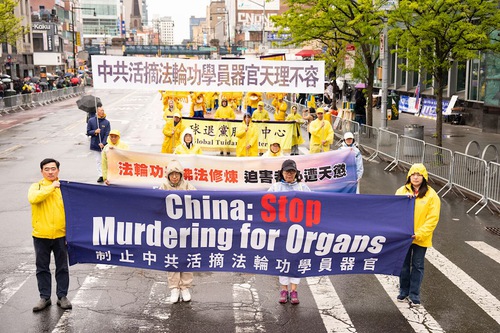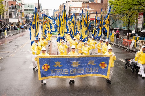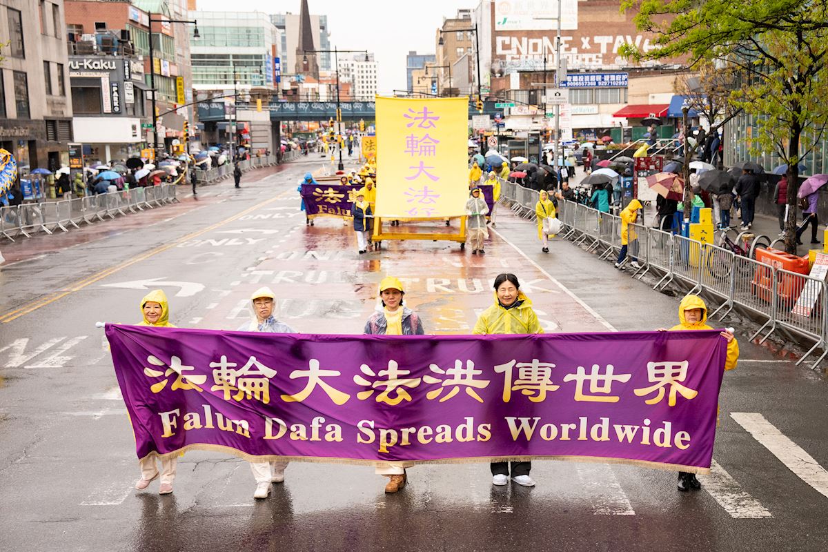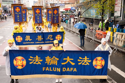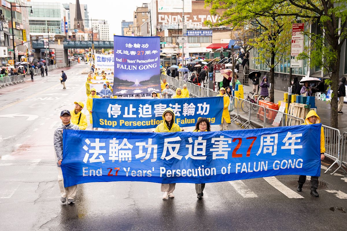 Falun Gong practitioners held a march on April 25 in downtown Flushing to commemorate the 27th anniversary of the peaceful appeal.