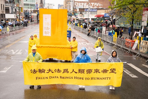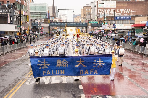 Led by Tian Guo Marching Band, the march in Flushing was composed of three sections: “Falun Dafa Is good,” “Stop the Persecution of Falun Gong,” and “Support the 460 Million People Who Have Withdrawn from the CCP.”