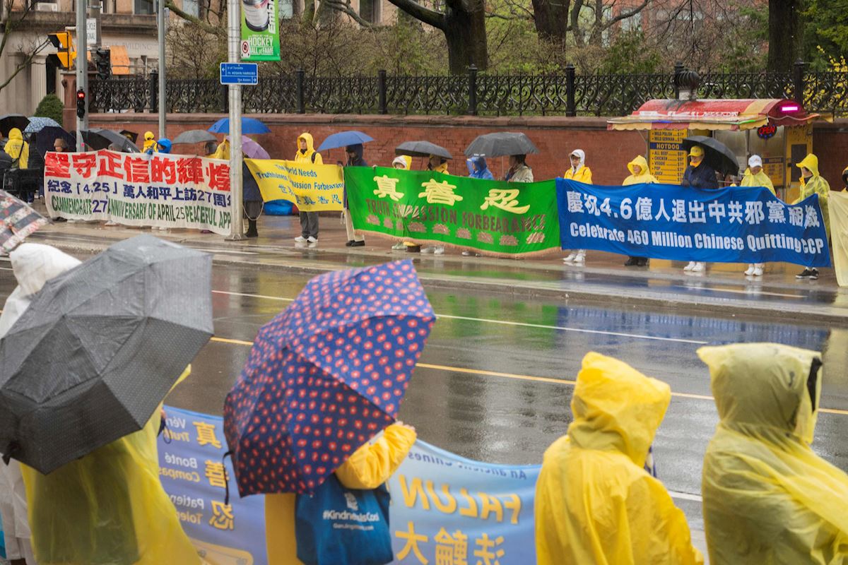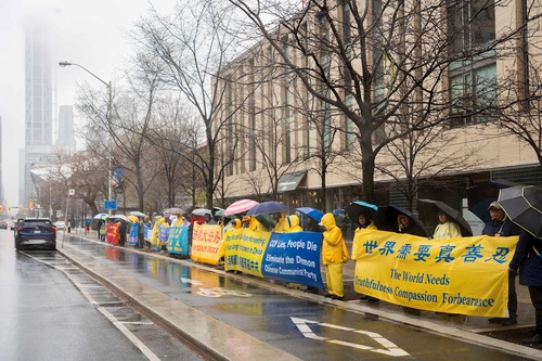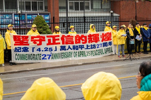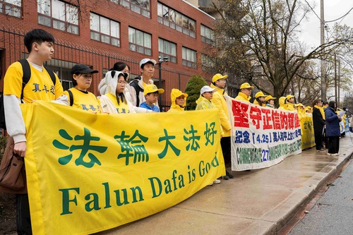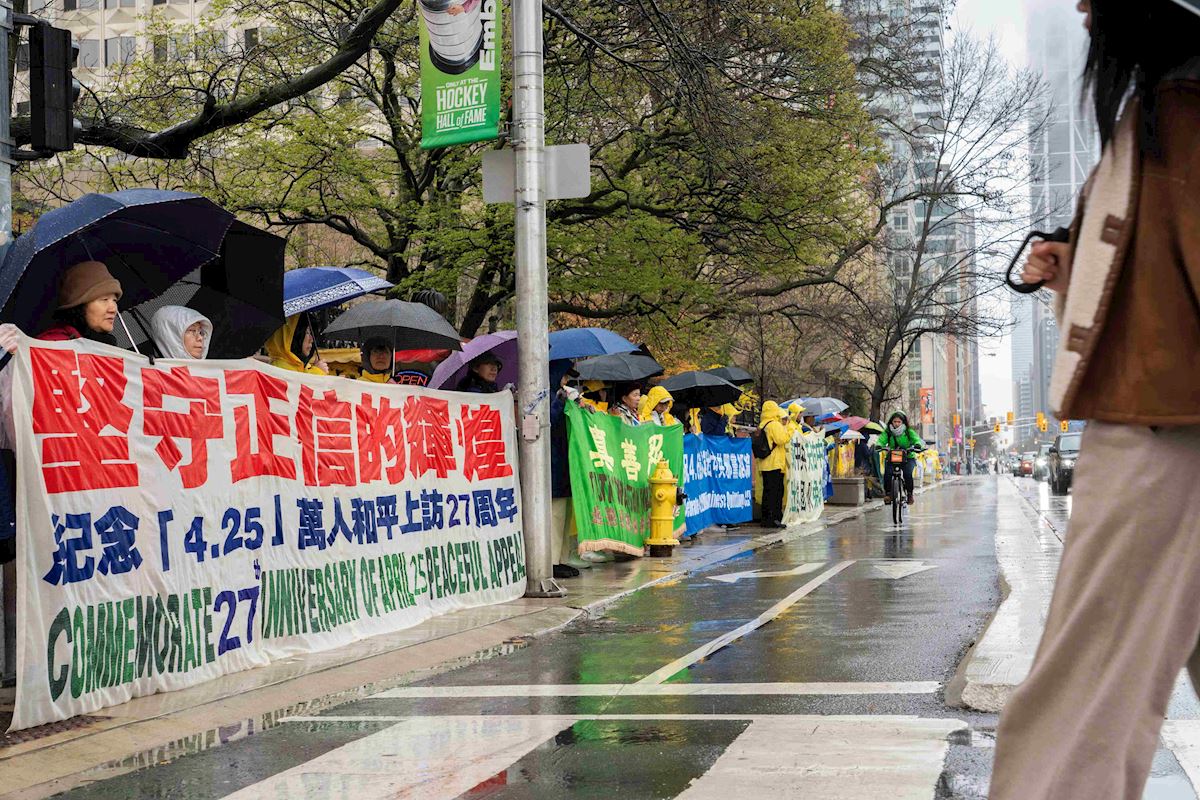 (Minghui.org) To commemorate the 27th anniversary of the April 25 appeal in Beijing, Falun Dafa practitioners held a rally in front of the Chinese Consulate in Toronto on April 25, 2026. Two practitioners who participated in the April 25 appeal and now live in Canada shared their stories.