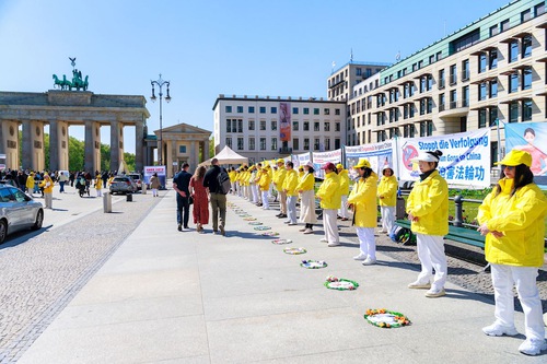 Practitioners’ event at the Brandenburg Gate commemorating the peaceful appeal in Beijing in April 1999