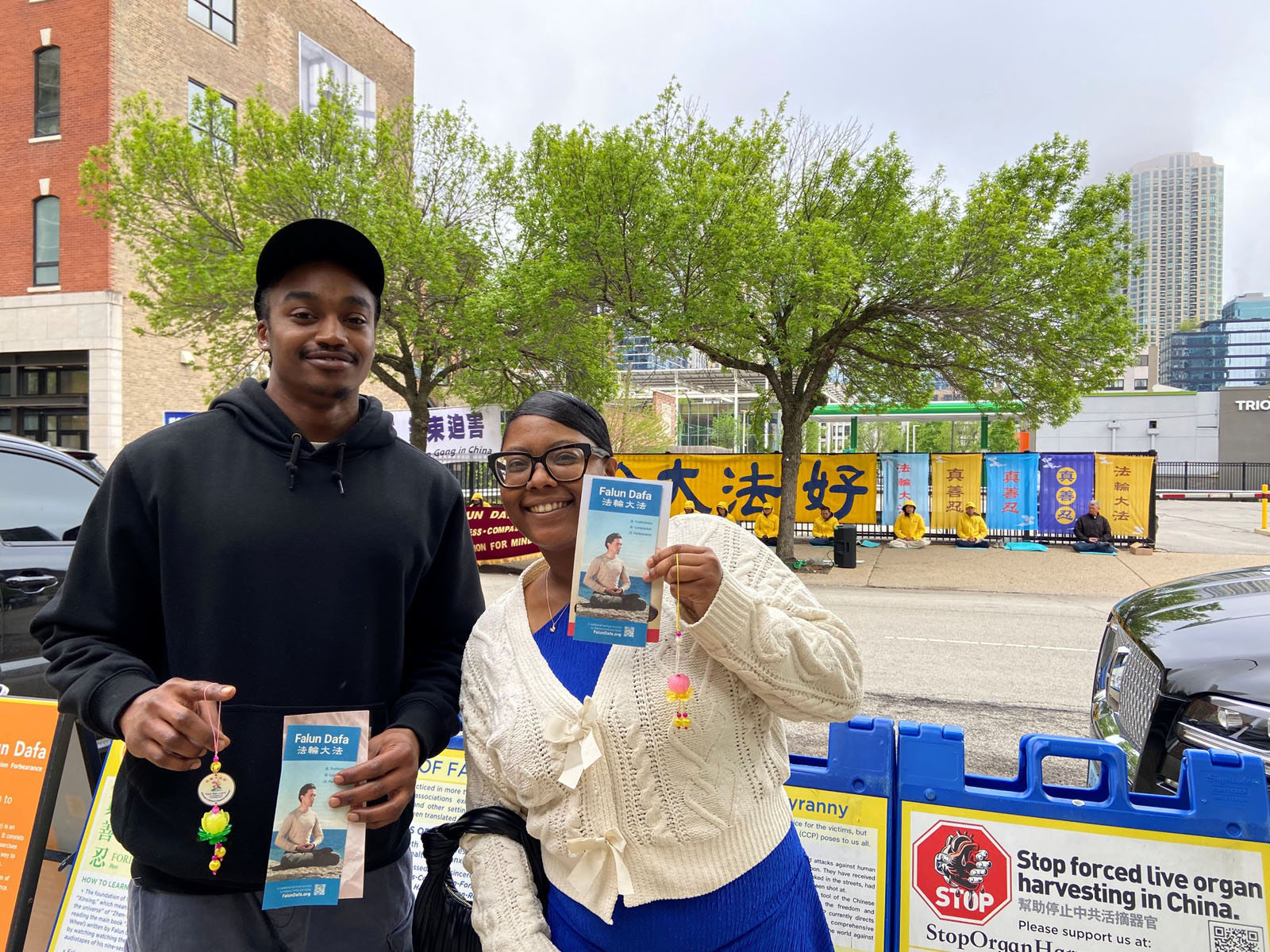 Jorge Vanegas of Chicago and his friend Mo Alhama from Portage, Indiana, signed the petition. Mo, said, “This is a wonderful practice. I hope practitioners in China have freedom to practice soon.”