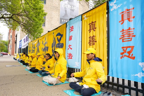 (Minghui.org) Practitioners held a rally in front of the Chinese Consulate on April 25, 2026, to commemorate the 27th anniversary of the April 25 appeal in Beijing. They did the exercises, talked with passersby about the benefits of practicing Falun Dafa, and told them how the Chinese Communist Party (CCP) persecutes the spiritual discipline.