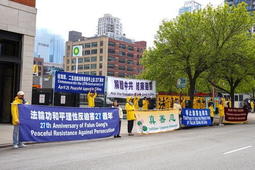 Ms. Xu said she’s participated in the protest in front of the Chinese Consulate in Chicago on April 25 every year since 1999. She said, “For me, this is my responsibility.”