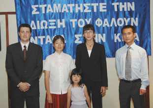 On August 5th 2004, European and Greek Falun Dafa Associations in conjunction with International Advocates for Justice (IAFJ), sponsored a press conference in Athens to announce to filing of the suit (press statement).