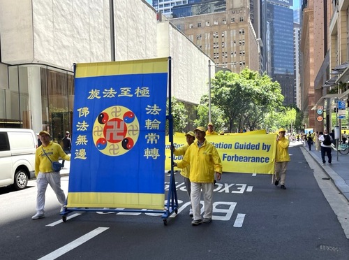 Toya, a jeweler, said, “I’ve seen some of these parades before. I think everyone has the right to speak their mind and freedom of speech. The parade is very well coordinated. and it’s also a peaceful protest. I certainly agree with the principles [Truthfulness, Compassion, and Forbearance].”