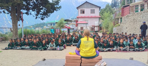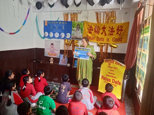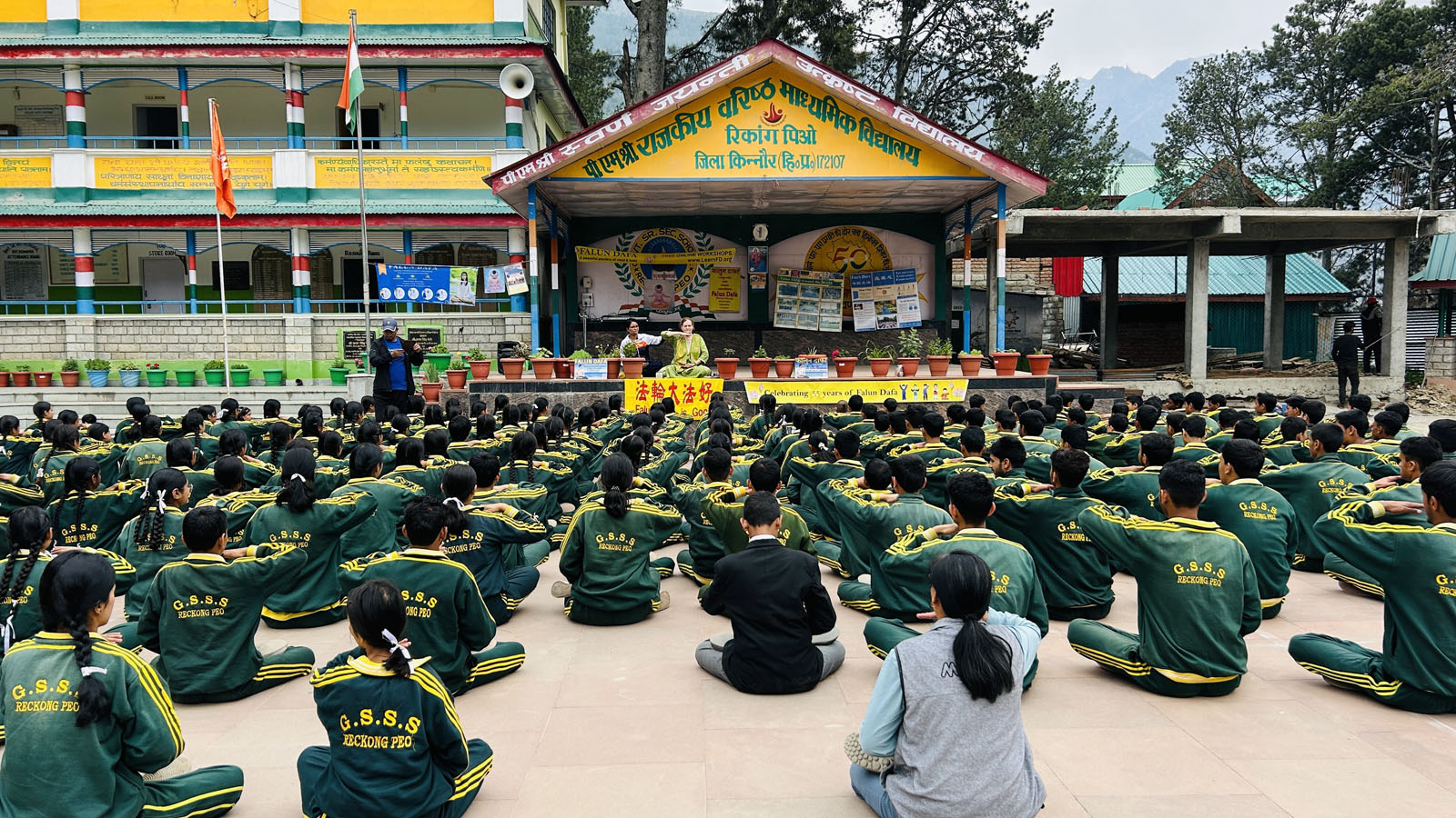 The practitioner contacted local schools and community organizations and held introductory sessions about Falun Dafa. She brought books, magazines, flyers, bookmarks, posters, and other informational materials that introduced the practice. These materials also cover the persecution in China by the Chinese Communist Party (CCP). During this trip, she was able to hold introductory sessions at 13 schools and a boxing club for children, and she also visited the regions of Reckong Peo, Sangla, Nichar, Chitkul, and Ponda.