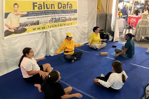 Maria and her family listened to a practitioner’s introduction, they stayed to learn the exercises and said they felt great.