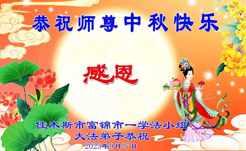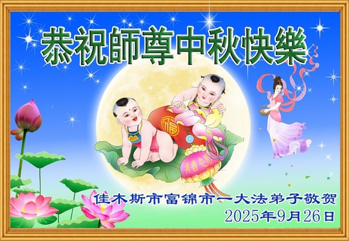 Falun Dafa Practitioners in Jiamusi City Respectfully Wish Master Li Hongzhi a Happy Mid-Autumn Festival (18 Greetings)