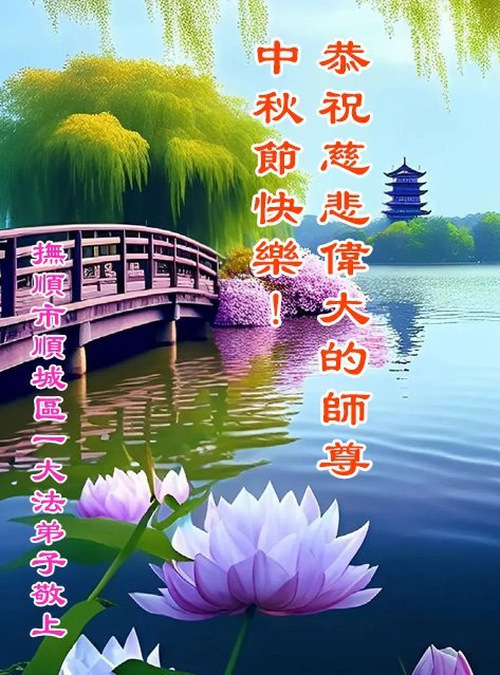 Falun Dafa Practitioners from Cities/Towns/Areas of Anshan, Fuxin, Liaoyang, and Fushun Wish Revered Master a Happy Mid-Autumn Festival!