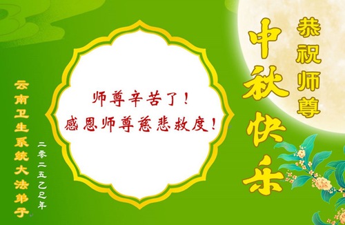 Practitioners in China’s financial system wish Master a happy Mid-Autumn Festival. Their greeting reads: “We are grateful for Master’s salvation. We will work hard to catch up with the progress of Fa-rectification, cultivate ourselves well, save more sentient beings, do the three things well, and follow Master to return to our true homes.”