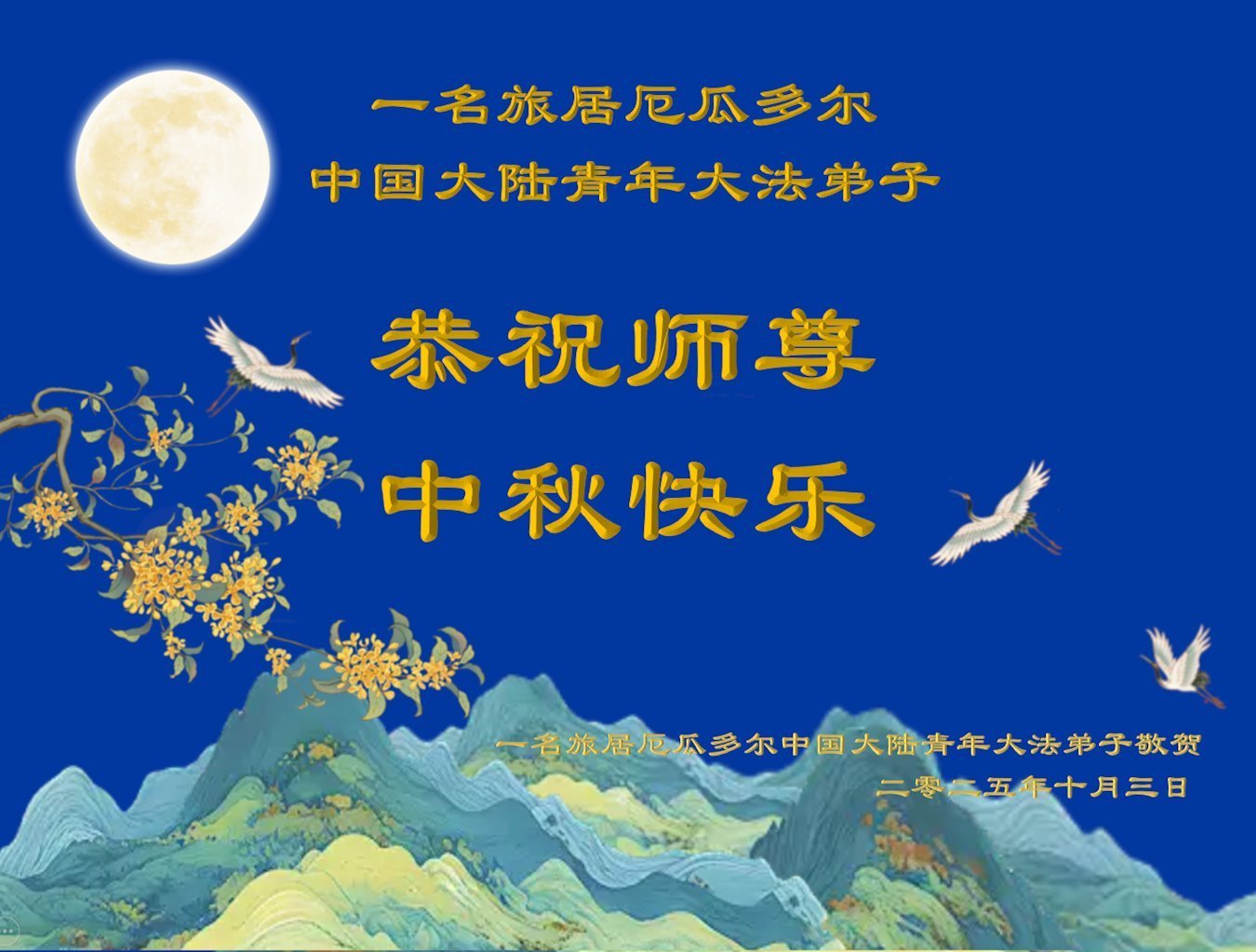 Falun Dafa Practitioner, Sojourning with Family in Ecuador, Respectfully Wish Master a Happy Mid-Autumn Festival!
