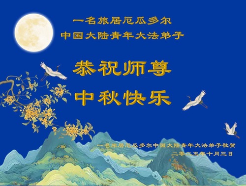 A Chinese Falun Dafa practitioner, Sojourning in Ecuador, and Relatives and Friends Respectfully Wish Master a Happy Mid-Autumn Festival!